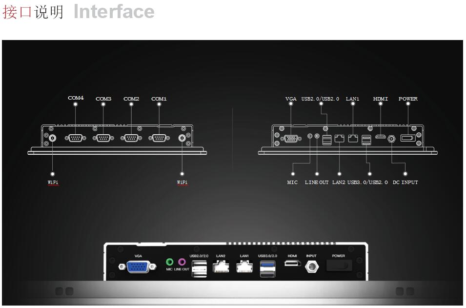 ●高溫5線制電阻式觸摸,10點(diǎn)電容式觸摸可選