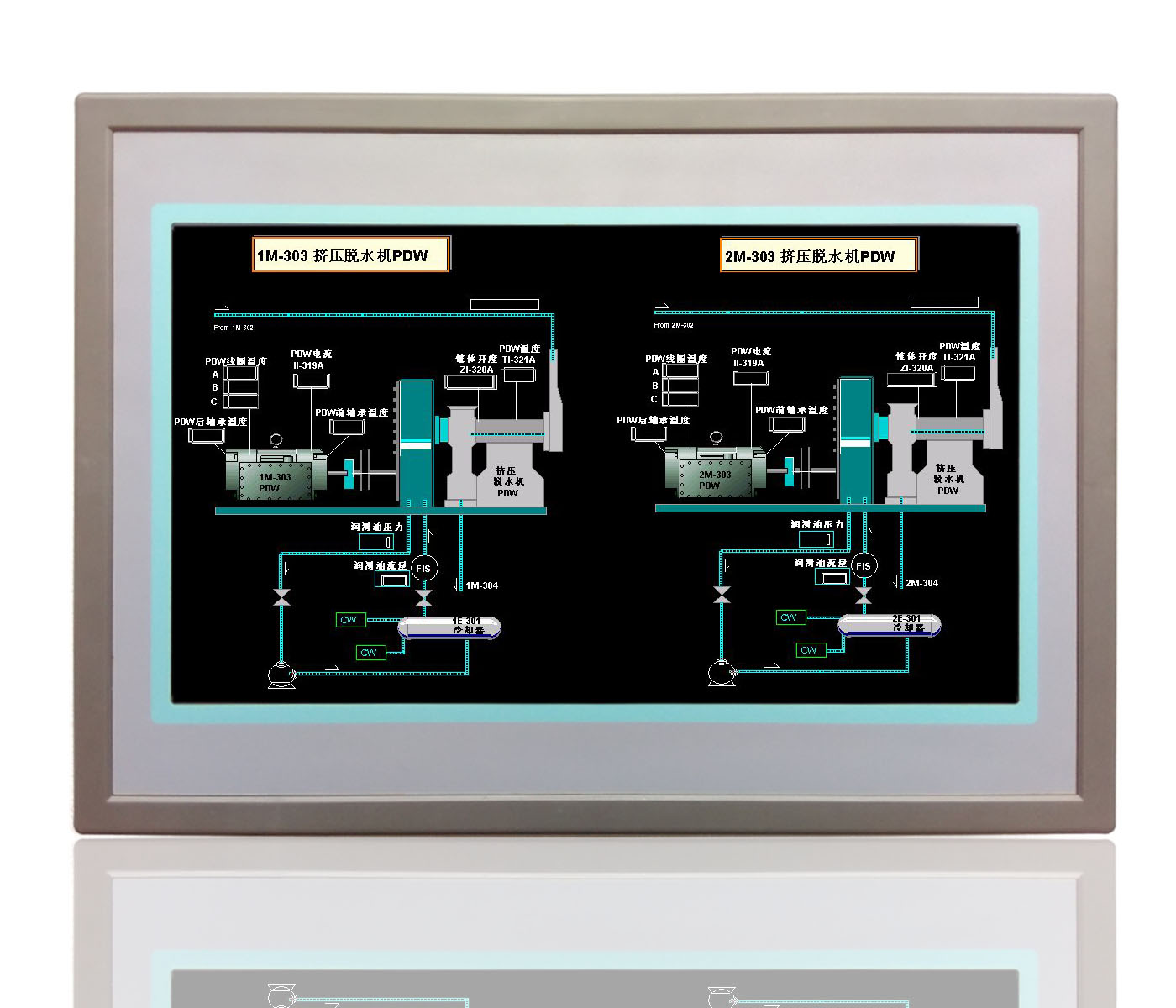 英寸高亮LED液晶顯示器(分辨率1024*600),四線電阻式觸摸屏(辨率4096*4096)。支持WIN CE6.0, 同時預(yù)裝CORWARE V2.9.8工業(yè)組態(tài)軟件。