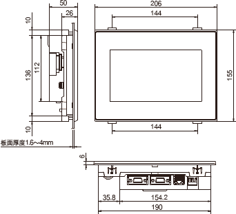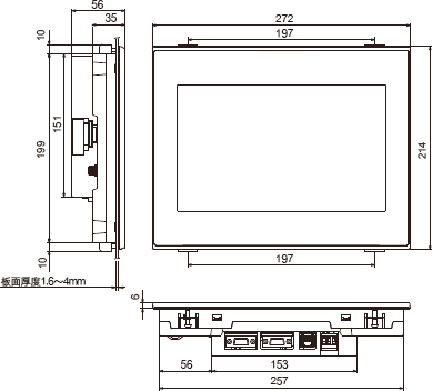 | 面板開孔尺寸 | W258×H200[mm](橫向顯示時) | W191×H137[mm](橫向顯示時) | |